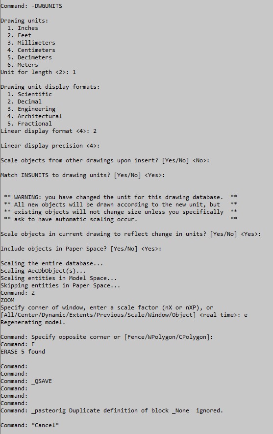 Found DWGUNITS. Changing the drawing units did nothing, changing the Drawing unit display formats fixed it.