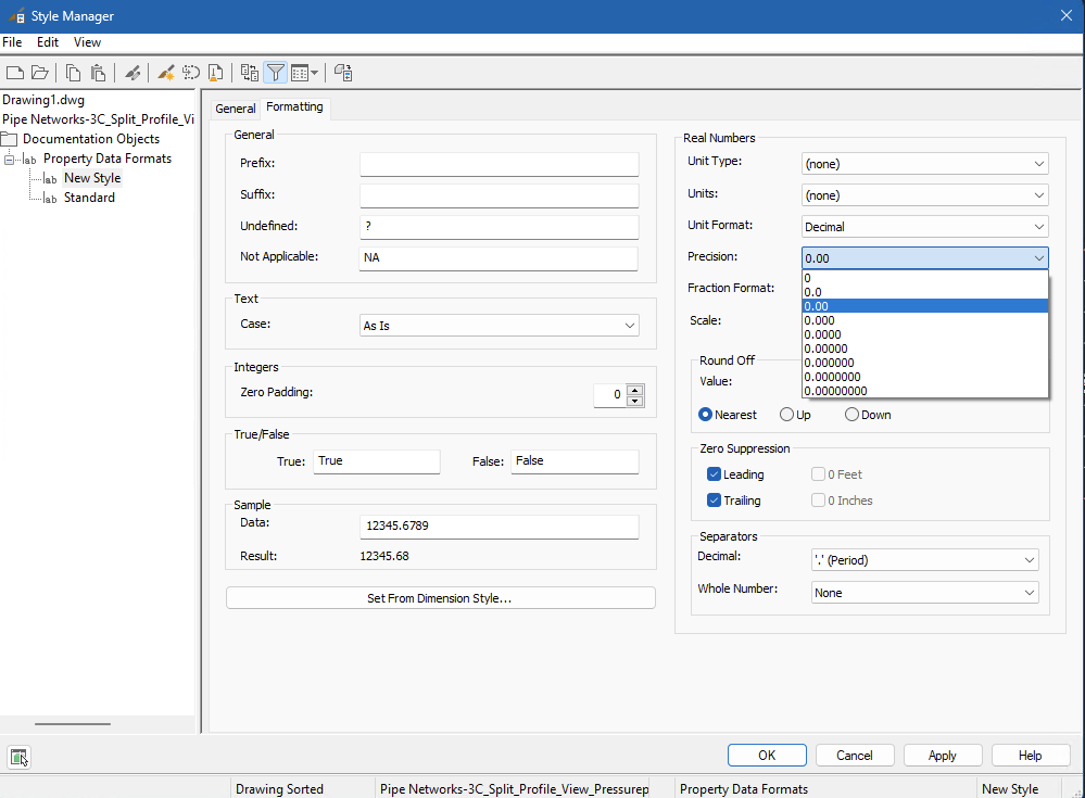 Property set data for Oulet Invert (Return 2 decimals) :