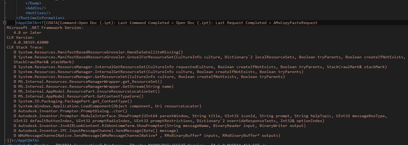 Extrait du fichier xml généré par inventor lors du crash :