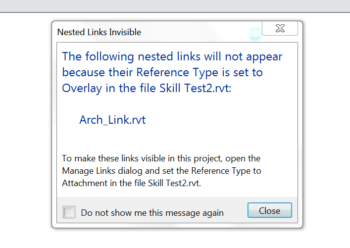 Similarly, i am trying to link another revit link then showing error "The following nested links will not appear"